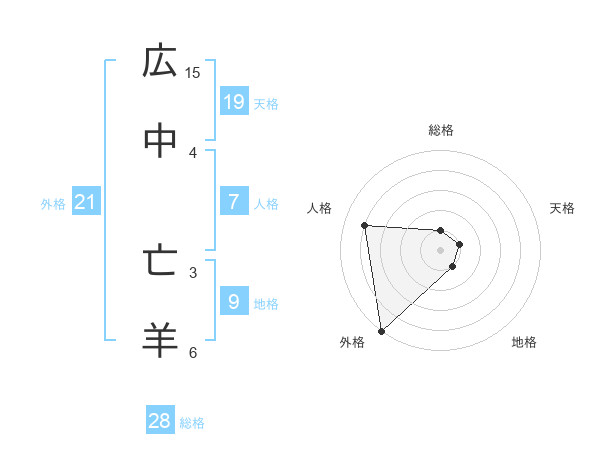 広中 亡羊さんを姓名の画数から五運を鑑定