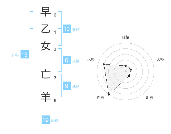 早乙女 亡羊さんの総格は19画の1点!