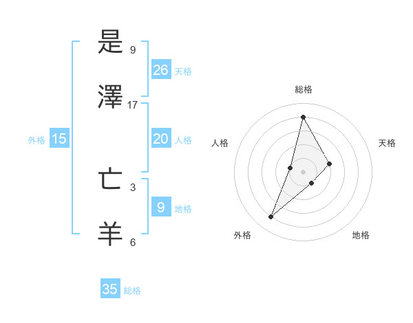 是澤 亡羊さんを姓名の画数から五運を鑑定