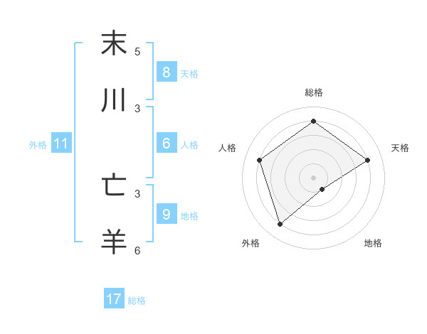 末川 亡羊さんを姓名の画数から五運を鑑定