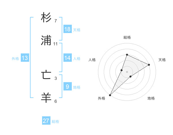 杉浦 亡羊さんを姓名の画数から五運を鑑定