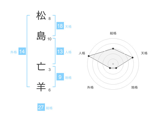 松島 亡羊さんの総格は27画の3点!