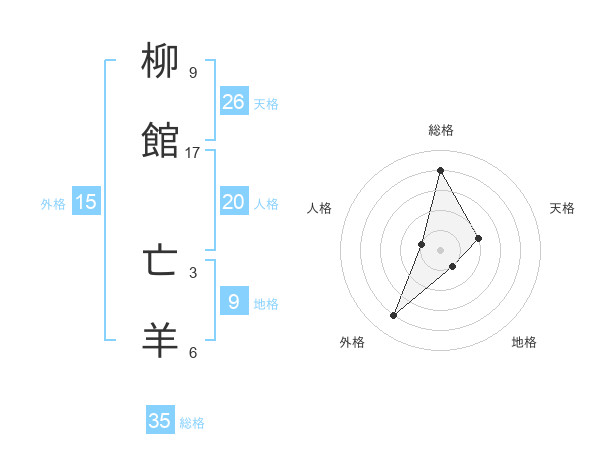 柳館 亡羊さんの外格は15画の4点!