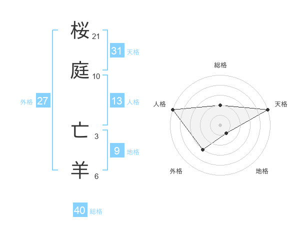 桜庭 亡羊さんの総格は40画の2点!