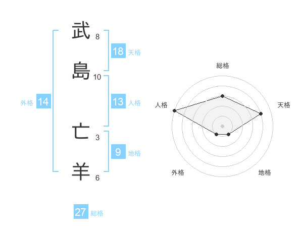 武島 亡羊さんを姓名の画数から五運を鑑定