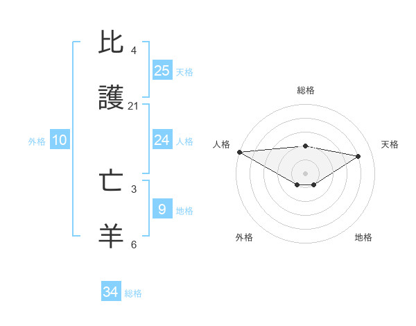 比護 亡羊さんの人格は24画の5点!