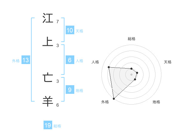 江上 亡羊さんの外格は13画の5点!