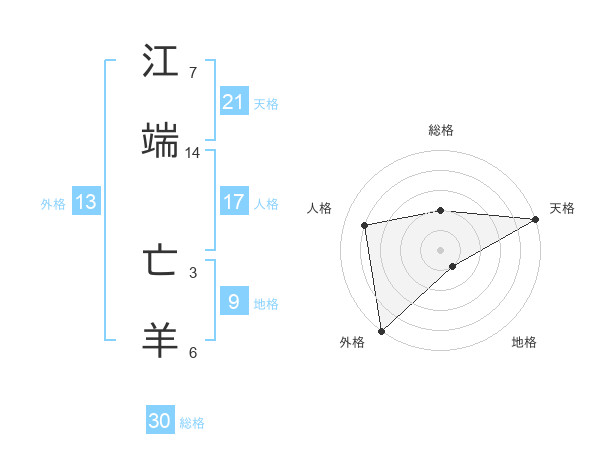 江端 亡羊さんの総格は30画の2点!