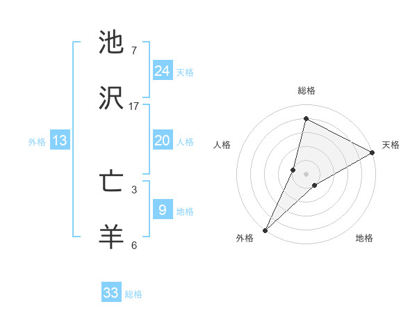 池沢 亡羊さんの総格は33画の4点!
