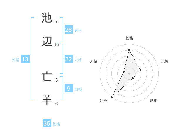 池辺 亡羊さんを姓名の画数から五運を鑑定