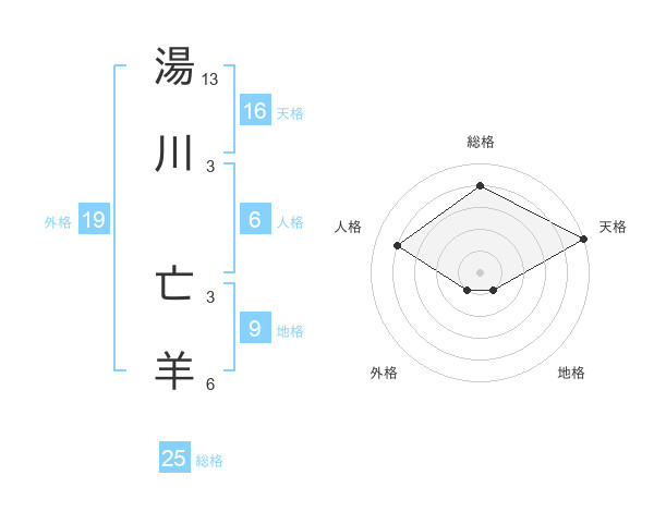 湯川 亡羊さんを姓名の画数から五運を鑑定