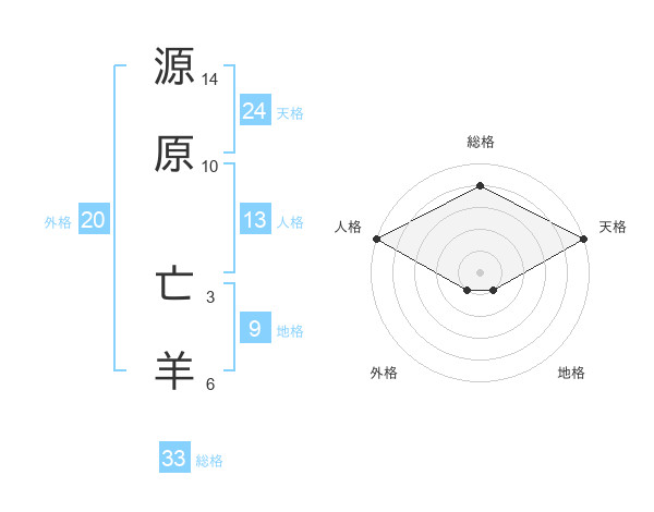 源原 亡羊さんの天格は24画の5点!