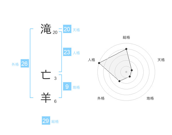 滝 亡羊さんを姓名の画数から五運を鑑定