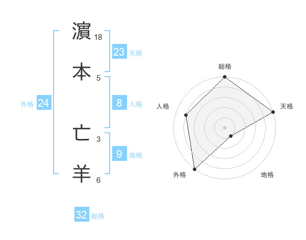濵本 亡羊さんの総格は32画の5点!