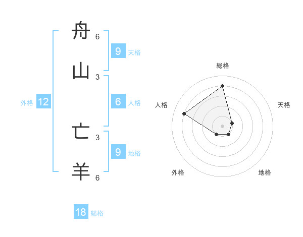 舟山 亡羊さんの総格は18画の4点!