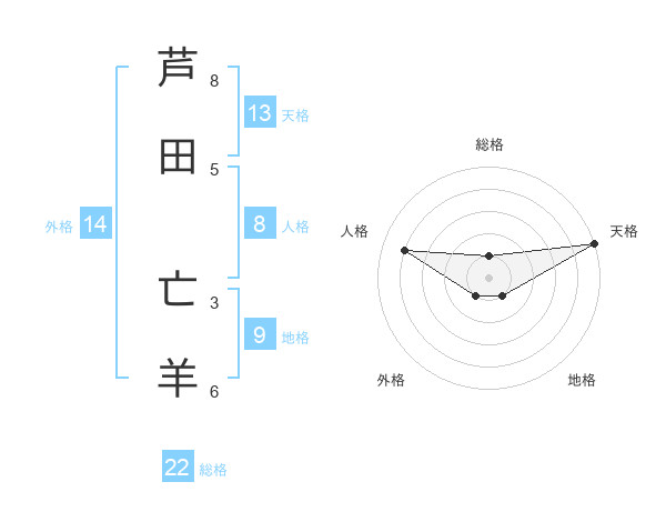 芦田 亡羊さんの総格は22画の1点!