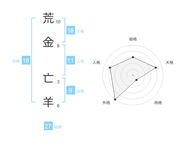 荒金 亡羊さんの外格は16画の5点!
