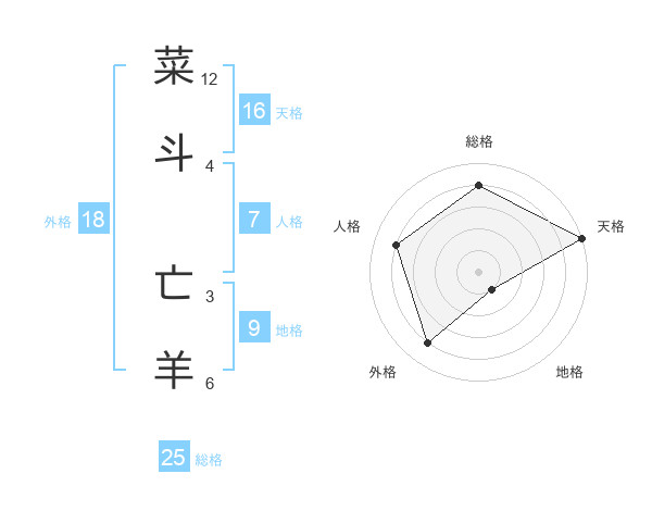 菜斗 亡羊さんの天格は16画の5点!