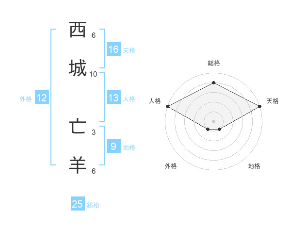 西城 亡羊さんの天格は16画の5点!