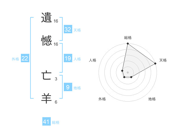 遺憾 亡羊さんの総格は41画の5点!