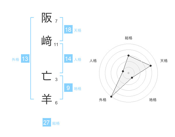 阪﨑 亡羊さんの総格は27画の3点!