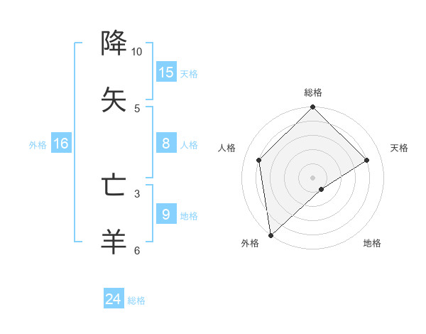 降矢 亡羊さんを姓名の画数から五運を鑑定