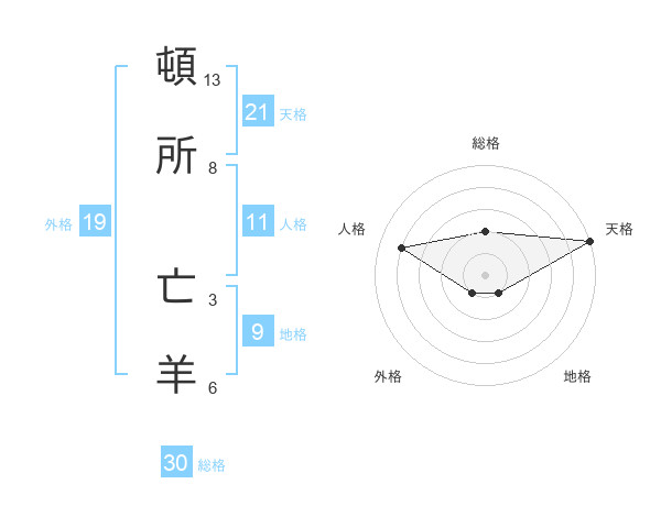 頓所 亡羊さんの天格は21画の5点!