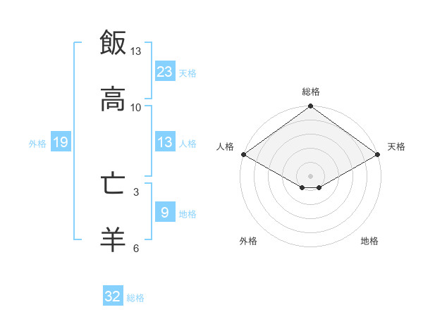 飯高 亡羊さんの総格は32画の5点!