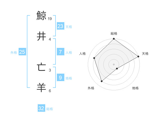 鯨井 亡羊さんの天格は23画の5点!