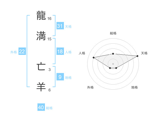 龍満 亡羊さんの総格は40画の2点!