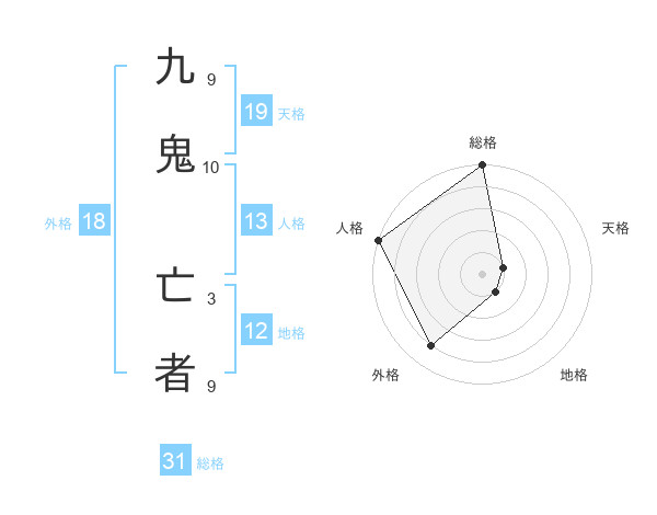 九鬼 亡者さんを姓名の画数から五運を鑑定