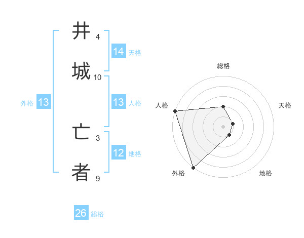 井城 亡者さんの人格は13画の5点!