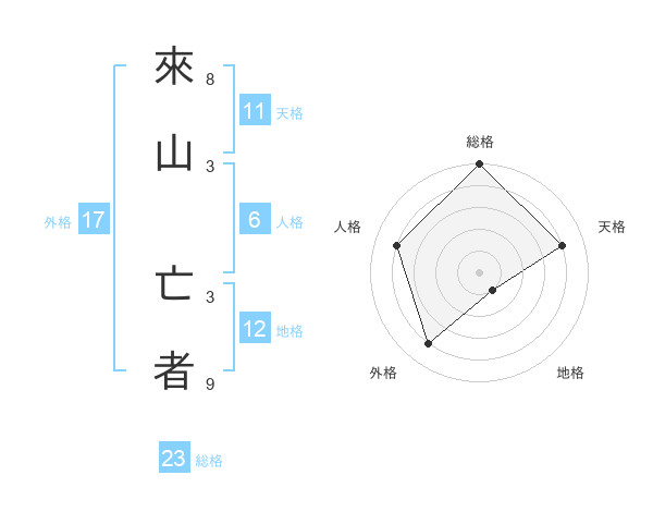 來山 亡者さんの総格は23画の5点!