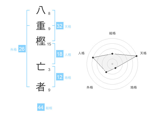 八重樫 亡者さんの天格は32画の5点!