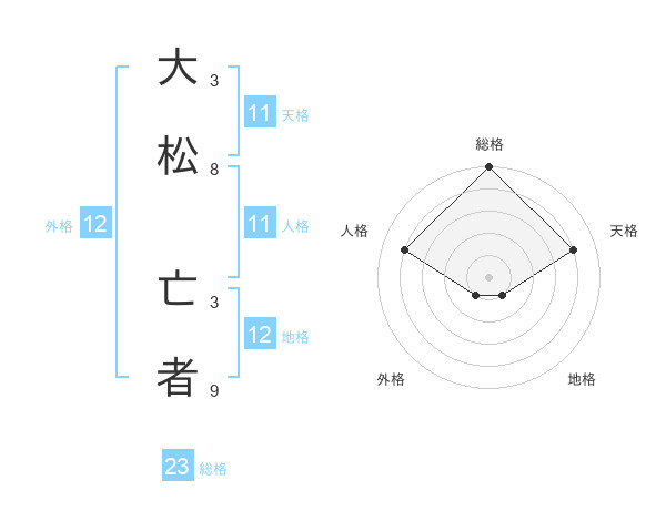大松 亡者さんの総格は23画の5点!