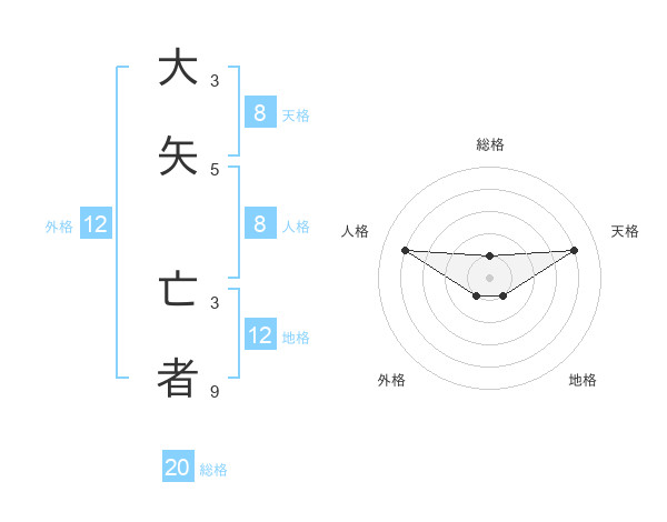 大矢 亡者さんを姓名の画数から五運を鑑定