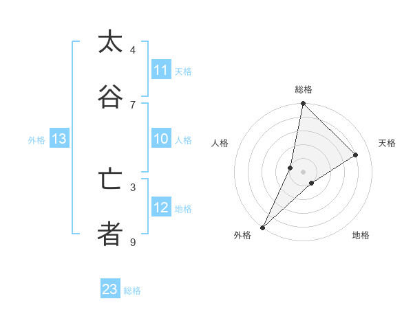 太谷 亡者さんの外格は13画の5点!
