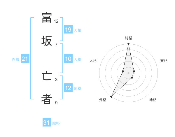 富坂 亡者さんを姓名の画数から五運を鑑定