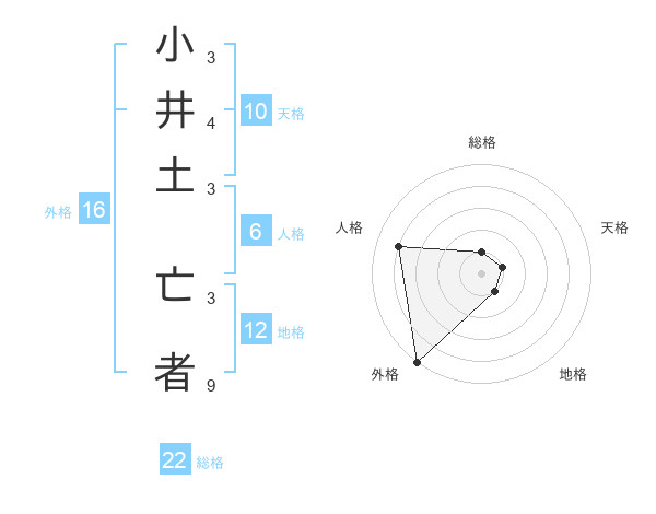 小井土 亡者さんの総格は22画の1点!