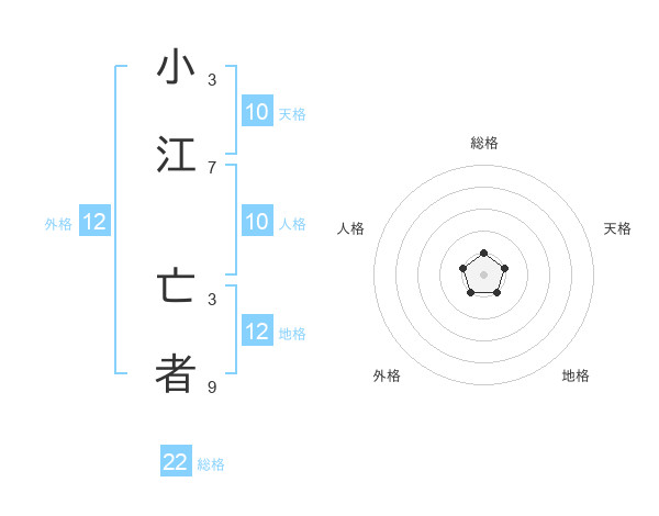 小江 亡者さんの外格は12画の1点!
