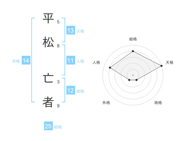 平松 亡者さんの天格は13画の5点!