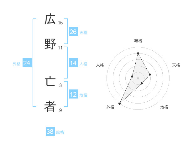 広野 亡者さんの総格は38画の4点!