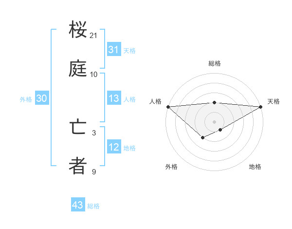 桜庭 亡者さんを姓名の画数から五運を鑑定