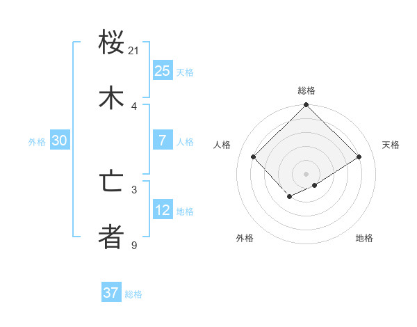 桜木 亡者さんの総格は37画の5点!