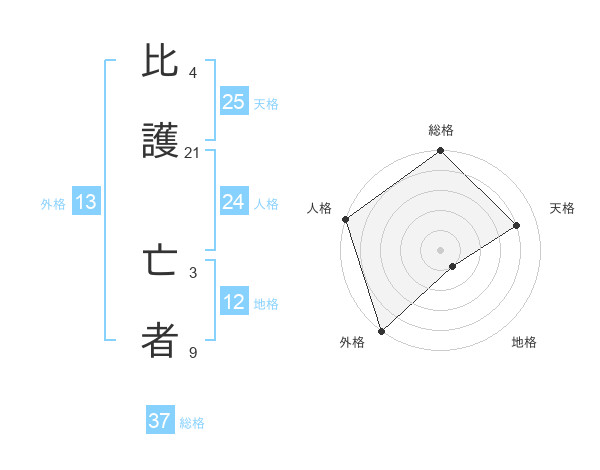 比護 亡者さんの総格は37画の5点!