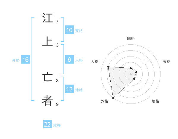江上 亡者さんの総格は22画の1点!