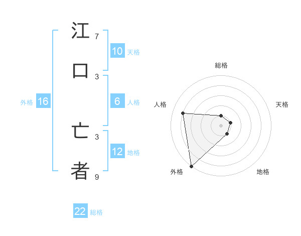 江口 亡者さんの総格は22画の1点