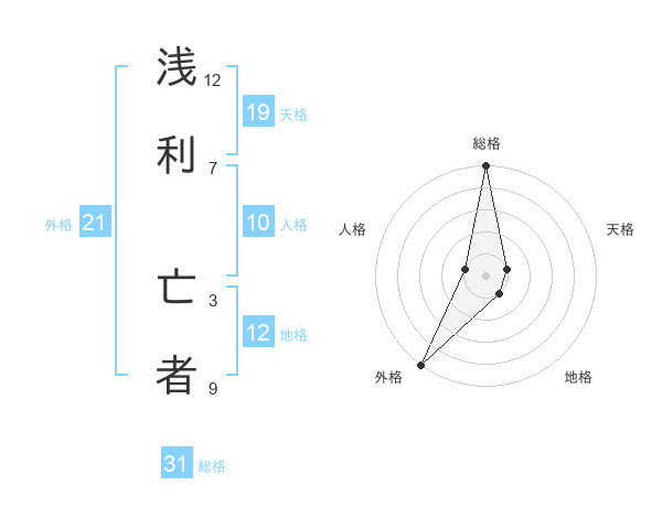 浅利 亡者さんを姓名の画数から五運を鑑定