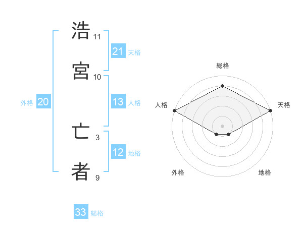 浩宮 亡者さんの総格は33画の4点!