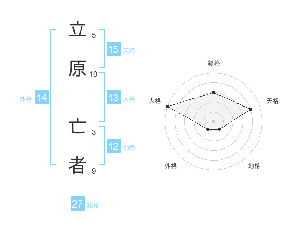 立原 亡者さんの総格は27画の3点!